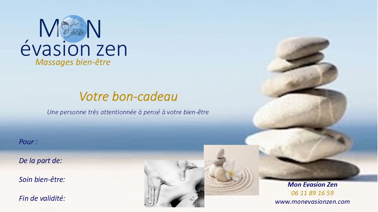 Vous souhaitez faire plaisir à ceux que vous aimez, offrez-leur un moment d’évasion bien-être avec le Bon-cadeau massage Mon Evasion Zen